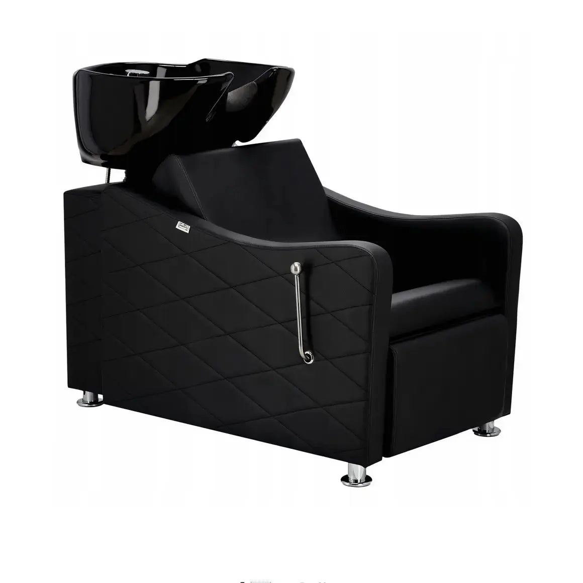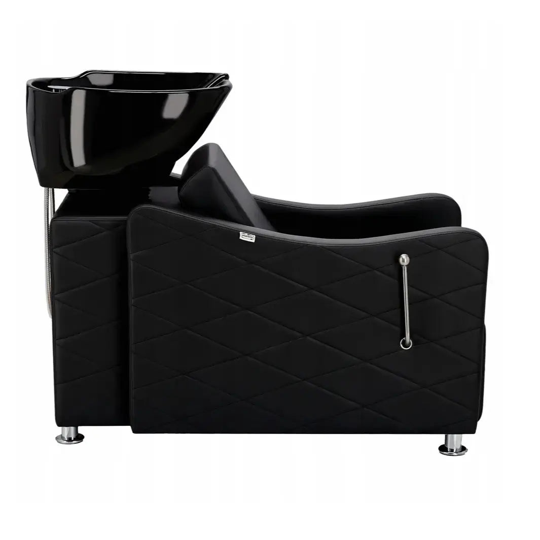 Schamponering King is a luxurious shampoo chair that perfectly balances functionality, comfort, and elegance. Designed for professional salons and barbershops, it features a padded seat and reclining backrest for maximum client relaxation. The black ceramic basin is durable, stylish, and easy to clean, while the quilted upholstery and chrome details enhance the overall premium look.